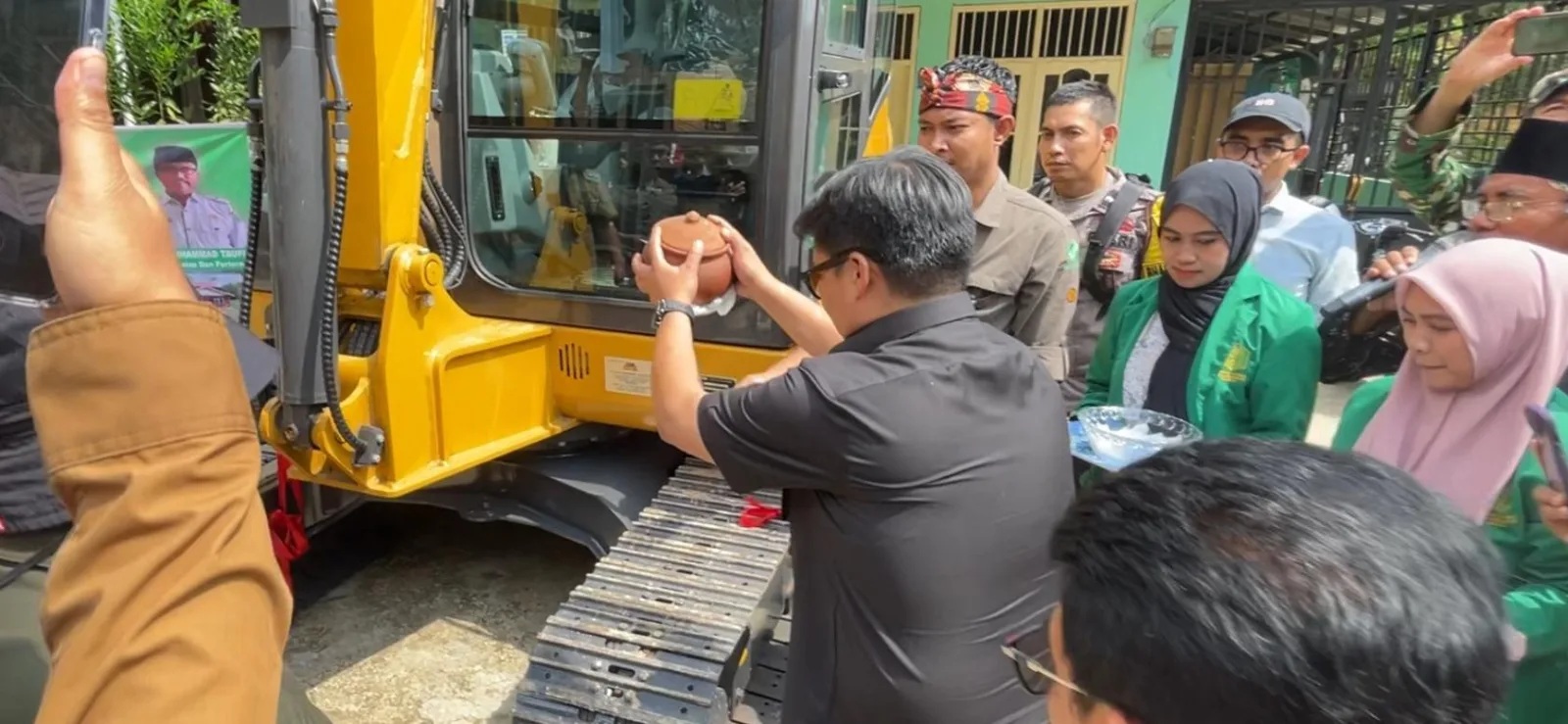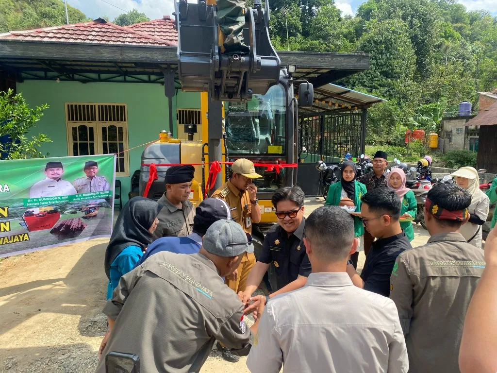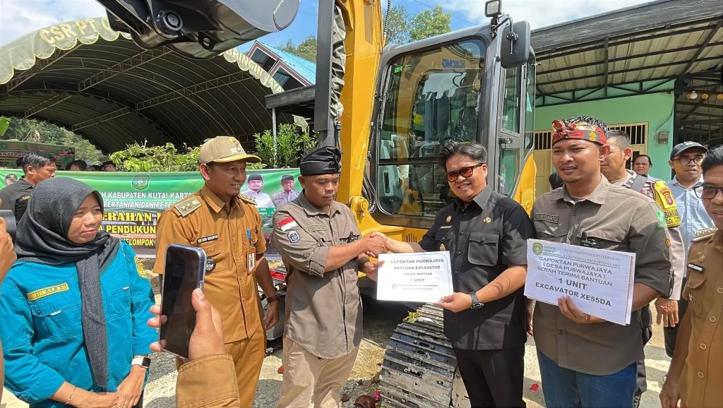 Purwajaya, Kecamatan Loa Janan. Penyerahan ini diawali dengan prosesi pemotongan pita dan pemecahan kendi pada excavator sebagai simbol dimulainya pemanfaatan alat berat tersebut oleh para petani.