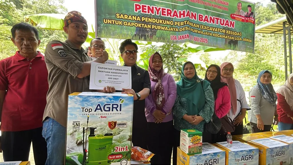 ![]() “Kami ingin petani-petani kita bisa bekerja lebih efisien dan modern. Bantuan ini adalah langkah awal untuk mewujudkan itu, khususnya bagi Gapoktan di Desa Purwajaya,” ungkap H. Rendi Solihin. Sebanyak 400 handsprayer juga diserahkan kepada kelompok tani (Poktan) yang tersebar di setiap dusun, guna menunjang kegiatan perawatan tanaman dan pengendalian hama di tingkat petani langsung. Acara ini turut dihadiri oleh Anggota DPRD Kabupaten Kutai Kartanegara, Bapak Hairendra, SE, Camat Loa Janan, Drs. Hery Rusnadi, Danramil dan Kapolsek Loa Janan, serta puluhan petani yang tergabung dalam Gapoktan Purwajaya.