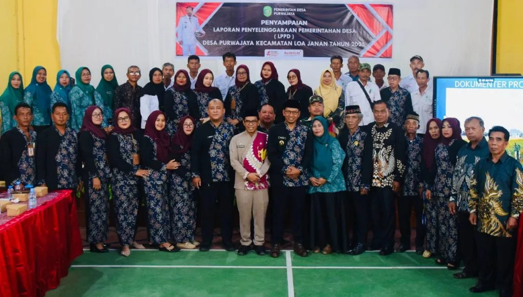 pemerintahan desa kepada masyarakat serta kepada pemerintah kecamatan. Acara tersebut dihadiri langsung oleh Camat Loa Janan, Drs. Hery Rusnadi, yang hadir untuk menerima laporan sekaligus memberikan pembinaan dan arahan kepada jajaran Pemerintah Desa Purwajaya. Turut hadir dalam kegiatan ini Ketua dan anggota BPD, Ketua LPM dan anggota, Kepala Dusun, para Ketua RT, Babinsa, PKK serta seluruh lembaga desa yang ada di wilayah Purwajaya.